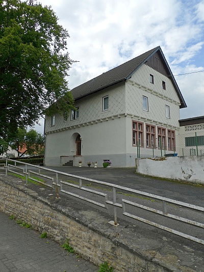 Ehemalige Schule mit Lehrerwohnungen; Putzbau, teilweise Fachwerk (verkleidet), bauzeitliche Stützmauer. [1]