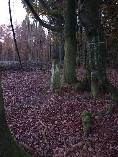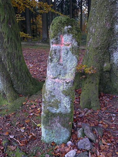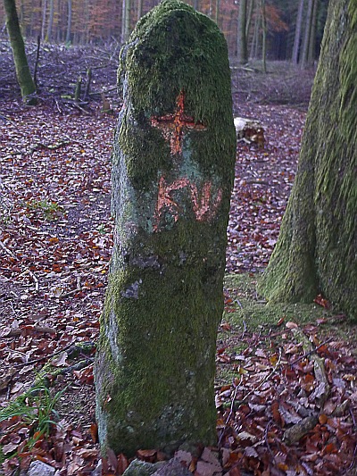 Obeliskförmiger Basaltstein mit je einem eingetieftem Kreuz am oberen Ende der vier Seiten, darunter auf einer Seite die Buchstaben KW, gegenüber angeblich die Jahreszahl 1822 (heute nur noch zwei als 8 und 9 zu deutende Ziffern erkennbar). Bei dem sicher älteren Stein treffen die Grenzen mehrere Gemarkungen zusammen. [1]