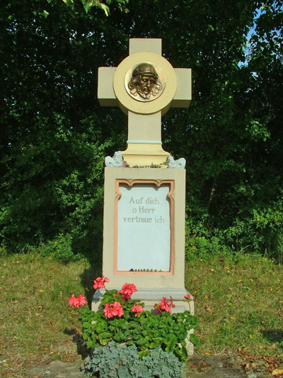 Südlich der Ortslage in Verlängerung der Hauptstraße an der Einmündung in die Landesstraße 138. Neugotisches Sandsteinpfeilerkreuz vom Ende des 19. Jahrhunderts; am Fuß die Erneuerung von 1926 datiert. In der Mitte des Balkenkreuzes ein erneuerter Christuskopf. [1]