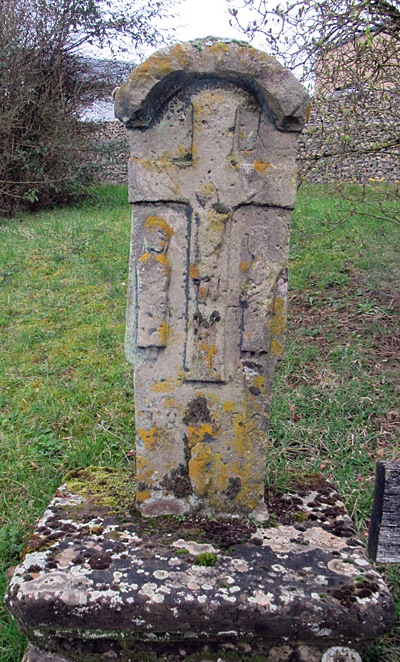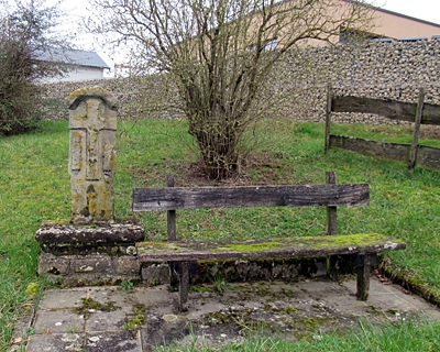 Das jetzt auf gemauertem Altarblock gestellte Kreuz aus grauem Sandstein ist das Fragment eines als Schaftkreuz gearbeiteten Bildstocks.