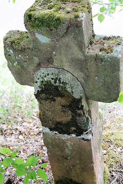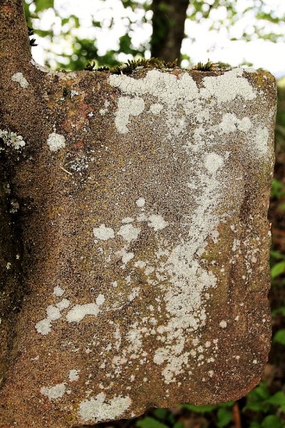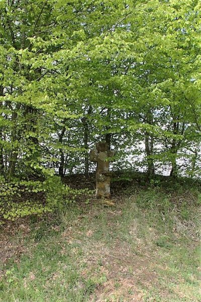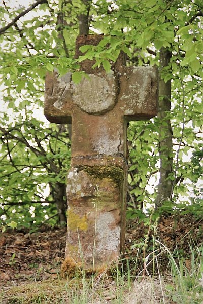 Reste eines Schaftkreuzes von 1734 in altem Fundamentstein. Vom glatten, oben mit einer stark bestoßenen Konsole versehenen Schaft fehlt die untere Hälfte. Das gleiche gilt für das ähnlich dimensionierte Abschlußkreuz, das auf dem Querbalken die Jahreszahl und das IHS-Zeichen im Blattkranz trägt.