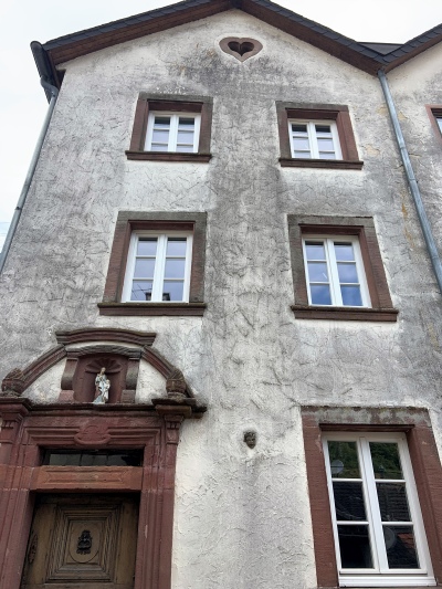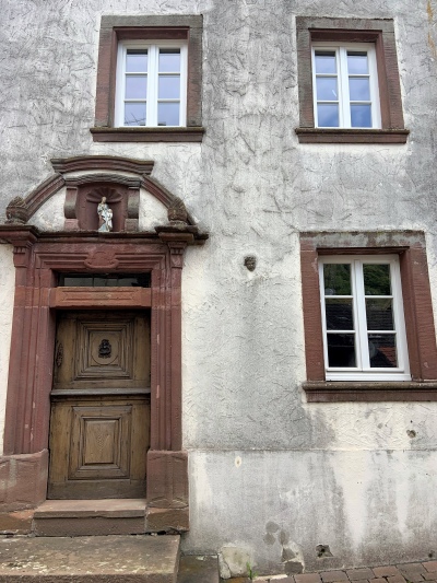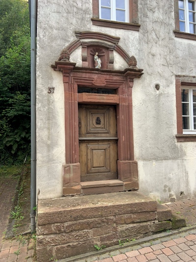 Schmales, dreigeschossiges Haus in Giebelstellung, 1792 durch MATHIAS REILAND (Türsturzinschrift) erbaut.