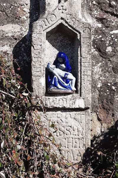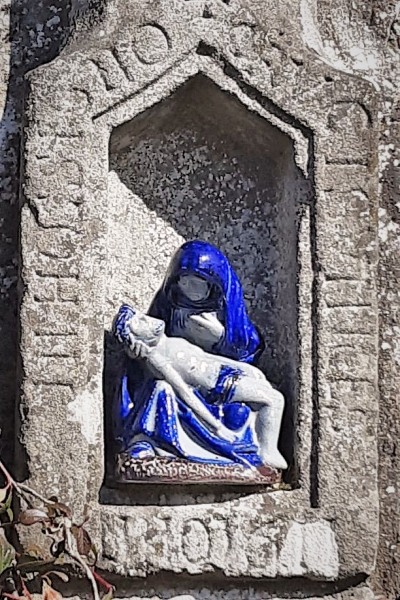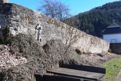 In neuerer Zeit wurde in die Klostermauer nahe der Südwestecke die obere Hälfte eines Nischenkreuzes vom Kyllburger Typ eingesetzt. Nach der Jahreszahl 1611 in der charakteristischen Nischenumschrift ist das Kreuz eines der frühesten seiner Art. Dem entspricht die noch horizontale, nicht schaftparallele Anordnung der unvollständig erhaltenen Inschrift; eventuelle weitere Merkmale für die frühe Entstehungszeit lassen sich wegen der starken Beschädigungen nicht erkennen. [1]
