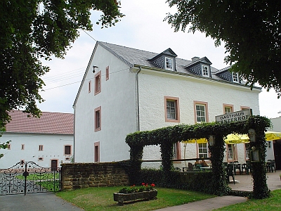 Das auf dem Hochplateau gelegene ehemalige Echternacher Klostergut wird erstmals 1401 erwähnt. Es wurde im Zweiten Weltkrieg beschädigt. Es besteht aus einem Wohnhaus des 18. Jahrhundert mit einem schlichten Portal, das bereits 1799 modernisiert wurde, einem älteren, unterkellerten Gebäude mit der Jahreszahl 1829 auf dem Türsturz und weiteren Wirtschaftsgebäuden, die größtenteils um die Mitte des 19. Jahrhundert entstanden sein dürften. Der Keilstein des Scheunentores ist 1849 datiert.