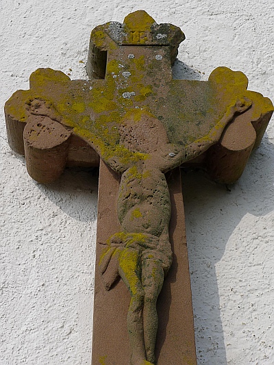 Im Kapelleneck 12: Katholische Filialkirche Sankt Sebastian; ehemalige Burgkapelle, Einstützenraum, 16. Jahrhundert; Wegekreuz, bezeichnet 1716. [1]