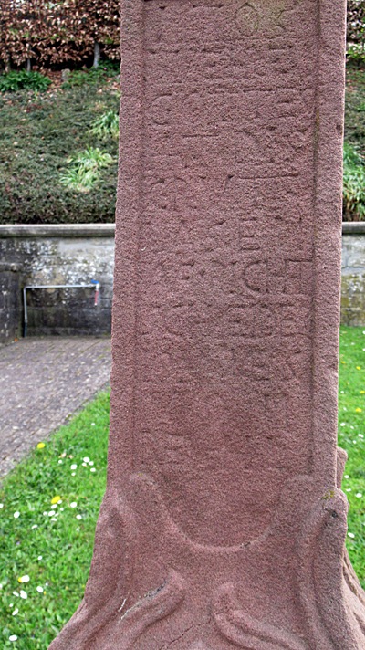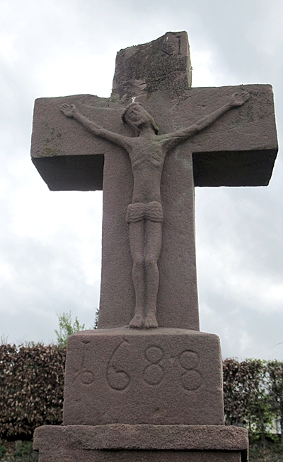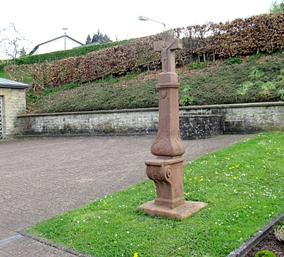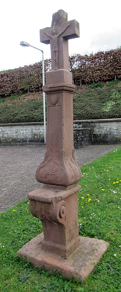 Auf dem neuen Teil des Friedhofs steht ein barockes Schaftkreuz aus rotem Sandstein. Seine Inschrift nennt als Stifter JOHANNES SCHNEIDER von Röhl und das Aufstellungsjahr 1705. Am Sockel springt eine Volutenkonsole vor, offensichtlich zum Absetzen der Monstranz. Das Abschlußkreuz ist unter dem Korpus 1688 datiert, gehörte also zu einem älteren Kreuz. [1]