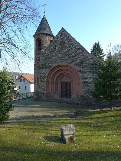 Auch in Jünkerath, wo bei der Jünkerather Gewerkschaft viele evangelische Angestellte und Arbeiter beschäftigt waren, mußte bald eine Kirche gebaut werden. Bezüglich der Bauausführung erklärte sich Herr Hüttendirektor Carl Friedrich Ludwig Schröder von der Jünkerather Gewerkschaft bereit, diese zu übernehmen. Es entstand eine freundliche Kirche am Berg-und Waldesrand, die mit einem Kostenaufwand von 13 400,- Mark hergestellt wurde.