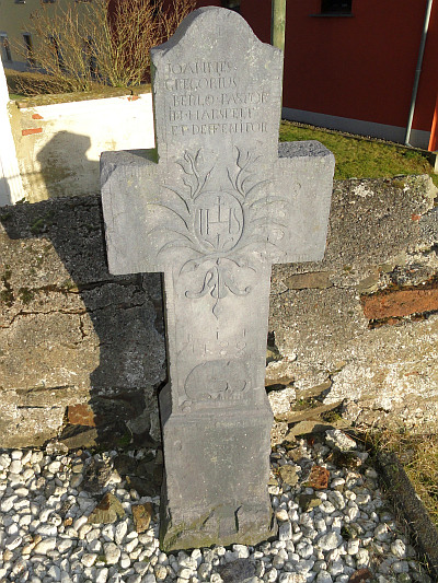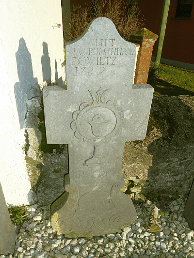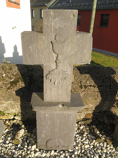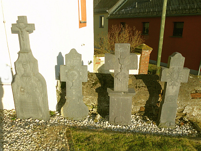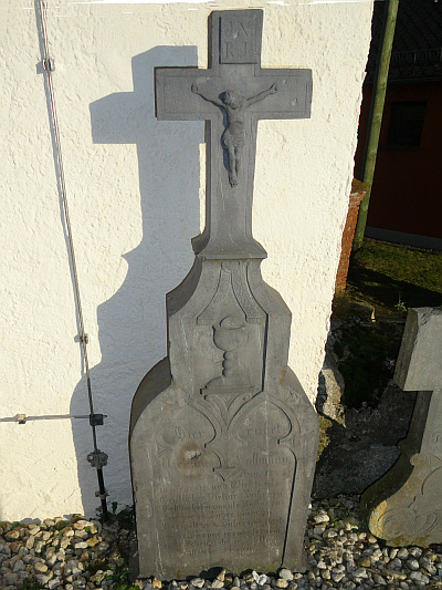 An der Ostseite des Kirchhofs vier aus Schiefer gearbeitete Pfarrergrabsteine des späten 18. und des 19. Jahrhunderts in zeittypischen Formen. [1]