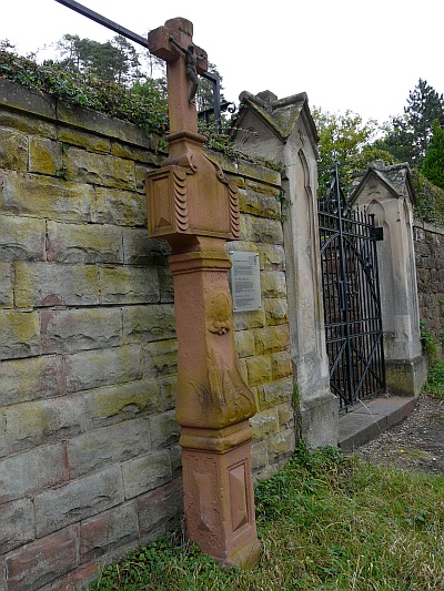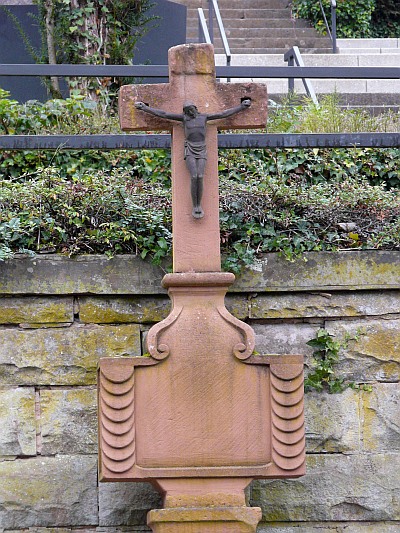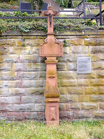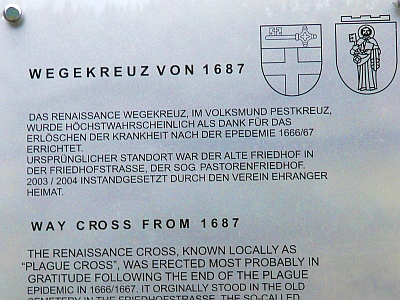 Ein [im Jahr 2004] restauriertes Wegekreuz schmückt seit kurzem den Eingang zum Ehranger Friedhof gegenüber der Gärtnerei Schein.