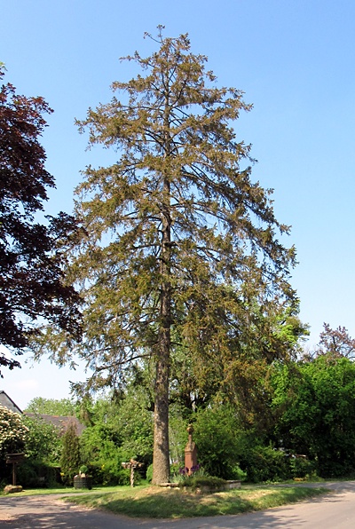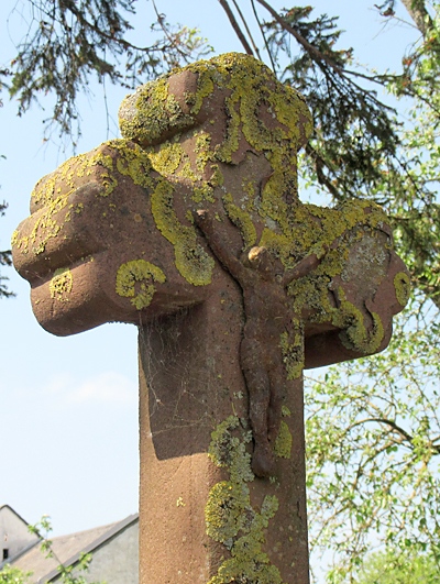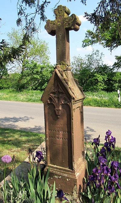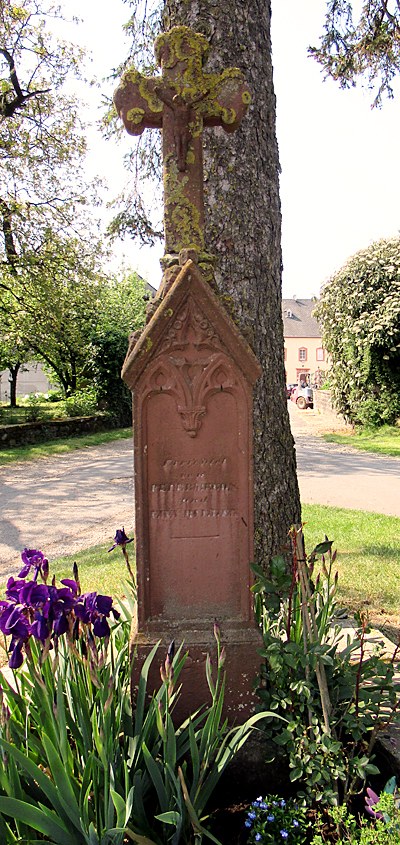 In der Zufahrt zum Hof steht vor einer Fichte ein Sandsteinkreuz mit kleeblattförmig endenden Balken auf neugotischem Schaft, das 1857 von PETER BEGON und EWA BILLEN errichtet wurde. [1]