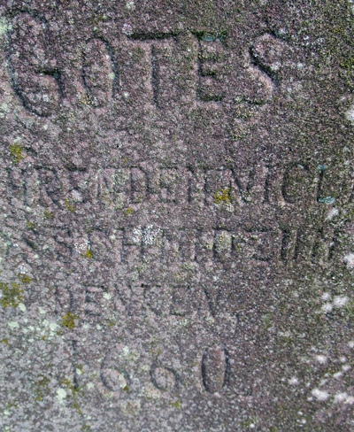 Am Schaft noch schwer leserlich die Inschrift mit Jahreszahl 1660 zu erkennen. [2]