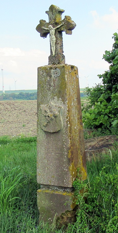 An der Straße nach Wolsfeld erhebt sich ein schlichtes Schaftkreuz aus dem Jahre 1913 (Inschrift Rückseite). Es vertritt ein zerstörtes Kreuz, das 1660 für NICLAS PERDSSCHMID errichtet wurde. Der Hammer und die Zange des Wappenreliefs erinnern an den Beruf des Stifters. [1]