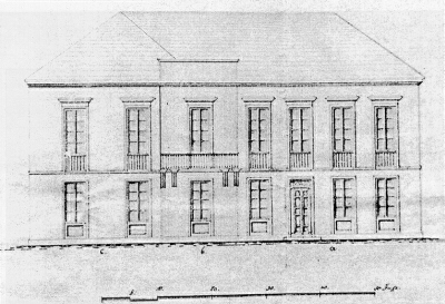 Der Bauplan sieht, anders als der ausgeführte Bau, die Ecke leicht eingezogen mit breitem Balkon sowie einer Attika über dem Traufgesims vor und besitzt eine geringere Achsenzahl als das ausgeführte Gebäude.