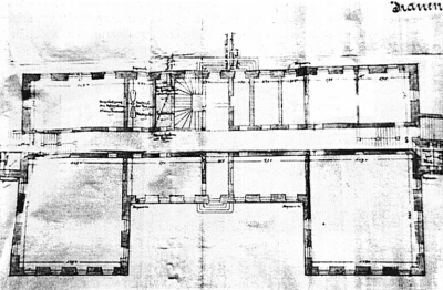 In Wolffs Lageplan ist das Gebäude innerhalb seiner Umgebung noch ohne die Turmanbauten gezeichnet, jedoch zeigt bereits der Stadtplan von Schmidt aus dem Jahr 1845 das Gebäude mit den seitlichen Türmen.