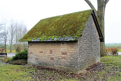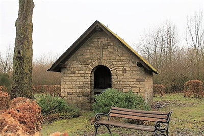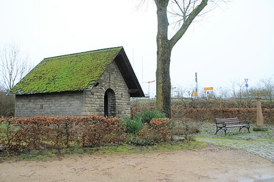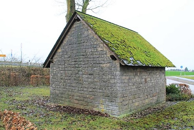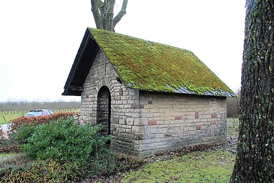 Nordöstlich von Dahlem. Im Innenraum der um 1950 / 60 völlig erneuerten oder sogar neu gebauten Wegekapelle ist eine Inschriftplatte erhalten, die auf die Errichtung des Vorgängerbaus im Jahr 1622 sowie den Stifter, CHRISTI ANUS VON DALEM CANONICZ UND SENGER ZU S SIMEON VON TRIER, hinweist und offenbar kurz nach dessen Tod angefertigt wurde (das Todesjahr nicht mehr lesbar). Der Inschrifttafel gegenüber steht ein Schaftkreuz wohl aus der Bauzeit der ersten Kapelle. Der gerade, nur in der unteren Hälfte schmal abgefaste Schaft bis auf einen kleinen Altarvorsprung unverziert, das Abschlußkreuz mit seinen ausgerundeten Winkeln zwischen den Balken und den gotischen Nasen wohl aus der Werkstatt der sogenannten Kyllburger Kreuze. [1]