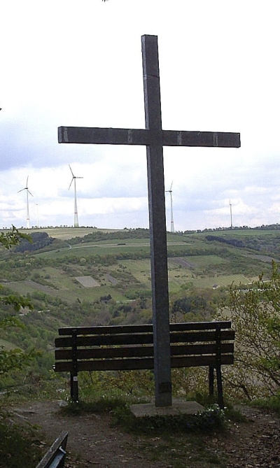 Auf der Naumeter Kupp bei Waldrach steht ein Kreuz. Was hat es damit auf sich? Als nach dem Krieg die Straßen und Brücken zerstört waren, wurden diese lange Zeit nicht wieder aufgebaut. Die meisten Häuser waren zerstört und provisorisch wieder aufgebaut, die Nahrung war knapp und schwer zu beschaffen. Daher mussten Menschen, die von Dorf zu Dorf, oder etwa nach Trier wollten, querfeldein, kilometerweit über Berge und Felder oder durch den Wald gehen. So geschah es, dass am 20. März 1950 drei Jungen im Alter von etwa 12-14 Jahren ihr Vieh, welches den Krieg überlebt hatte, beziehungsweise neu hinzugeboren wurde über die Naumeter Kupp führte, um es dort weiden zu lassen. Dort entdeckten sie eine große Menge an Munition und Geschützen aus den Kriegsjahren. Natürlich wurden die Jungs sehr neugierig, und sahen sich dies einmal genauer an. Doch beim Spielen mit den Waffen entzündete sich etwas und mit all den Munitionsrückständen sprengte sich das Gelände durch den Ablauf einer Kettenreaktion fast völlig in die Luft. Alle drei Kinder kamen bei diesem Unglück ums Leben. Dort wo sich all das abspielte, erinnert nun ein Kreuz als Mahnmal an den Krieg und das schreckliche Unglück. Nach dem Krieg, in der Besatzungszeit, war die Erde übersät mit nicht explodierten Minen und Granaten und hinterlassenen, scharfen Waffen. Außer in Ortschaften wurde sonst fast nirgendwo richtig geräumt. Deshalb war dies keineswegs ein Einzelfall, sondern eher ein Vorfall, der trauriger Weise schon beinahe zum alltäglichen Geschehen gehörte.