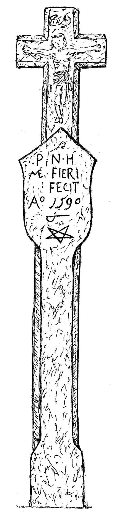 Diese Kreuzesform ist ein besonders kunstgeschichtlicher Beweis für die Art und Form der sogenannten Vollnischenkreuze. Der Schaftfuß, der als Vierkantschaft aus der Erde ragt, wird dann an den Kanten bis etwa zwei Meter über der Erde gebrochen. Anschließend geht er zur Vollnische über. Die Inschrift: P N H ME FIERIFECIT Ao 1590 (PNH hat mich errichten lassen im Jahre 1590). Darunter ist ein liegendes P und ein Pentagramm (Fünfstern) eingeschlagen. Der Korpus ist in ausdrucksvoller Form gearbeitet. Trotz des hohen Alters von nahezu 400 Jahren zeigt das aus hellem Sandstein gestaltete 3,50 Meter hohe Kreuz noch keinerlei Verwitterungserscheinungen.