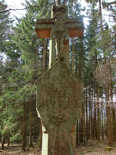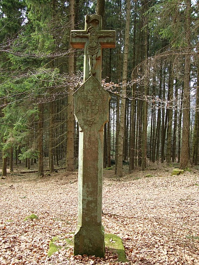 Mahnend steht es am sanften Hang von uralten Linden umrahmt; das alte Paterskreuz, wie es der Volksmund nennt. Schwierig ist es, etwas über dieses schlichte Steinkreuz, das fast drei Meter hoch aus einem Block gehauen ist, zu erfahren. Die Bauern, die ihre Äcker in der Gegend desselben haben, erzählen, daß ein Pater das Kreuz aus den nahen Orte St. Thomas, ob der Buße oder zur Erfüllung eines Gelübdes oder wegen eines sonstigen frommen Grundes, den Berg hinauf geschleppt habe, konnte ich leider nicht feststellen. [3]