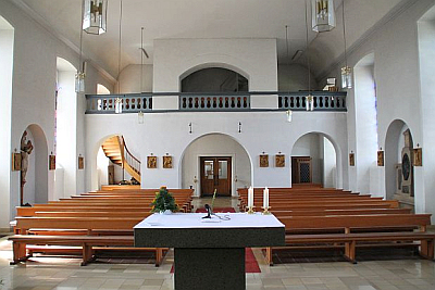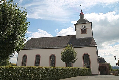 Neubau von 1830. Hochaltar Anfang 18. Jahrhundert aus Ürzig, mit älterem Kruzifixus (1613?). Turmmonstranz von 1608. [1]