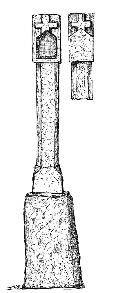 Römerstraße. Über der Nische, die auf hartkantigem Schaft steht, ist ein Kreuz ausgehauen, das übrigens auch an den übrigen anderen drei Seiten über der Giebelspitze der Blendnische ausgehauen ist.