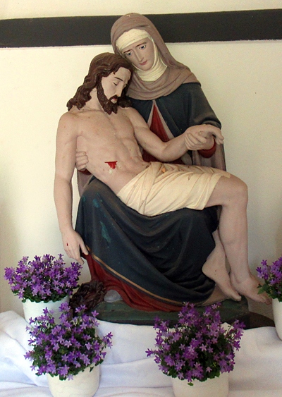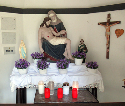 Aus Dankbarkeit über den guten Ausgang baute die Familie dann der Schmerzhaften Muttergottes das Heiligenhäuschen. Zur Einweihung ging eine Prozession zu diesem Ort, und das Mädchen Angela Großmann trug die Statue in die Kapelle. Vor Jahren ließen die Eigentümer eine neue Tür anbringen und sorgen auch für die Unterhaltung des Frenzes - Kapellchens. [1]