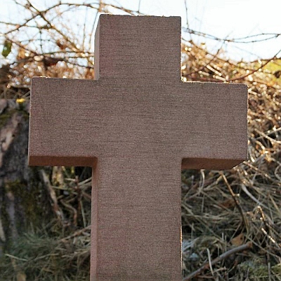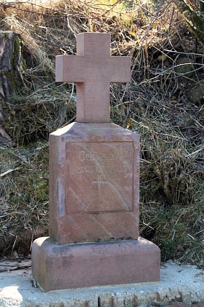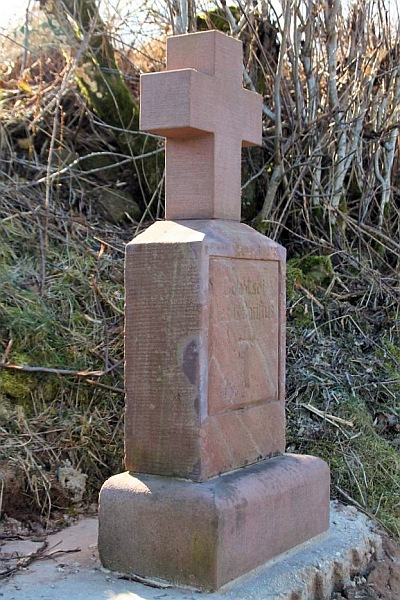 Schaftkreuz mit flacher, weitgehend verwitterter Inschrift, wohl 19. Jahrhundert. [1]