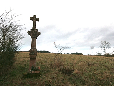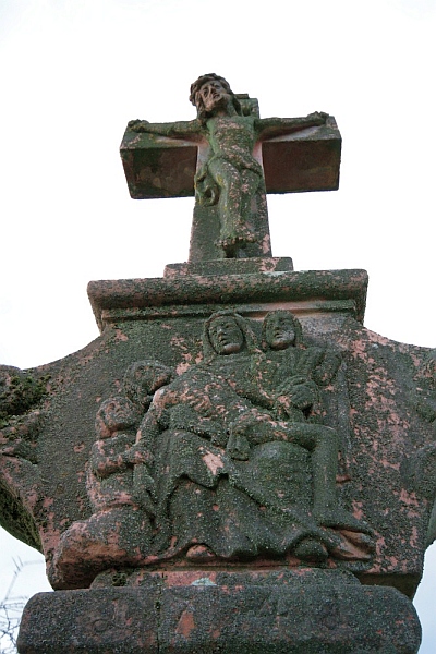 Das Schaftkreuz in der typischen Form des frühen 18. Jahrhunderts wurde unter Verwendung des originalen Schaftes rekonstruiert; Kapitell und Kruzifix sind Abgüsse.