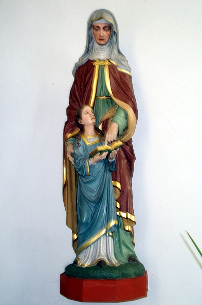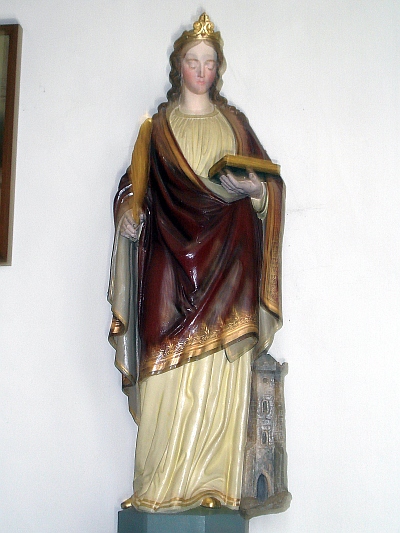 Zum Gedenken an diese frühere Nikolauskirche [...] die jetzige Kapelle, die ebenfalls dem heiligen Nikolaus geweiht wurde. Den Eingang krönte lange Zeit eine etwa 80 cm hohe Holzfigur des Heiligen, die wohl noch aus der Hatzdorfer Kirche stammte. Die neue Holzfigur, welche sich heute über dem Eingang im Giebel der Kapelle befindet wurde nach der stark verwitterten alten Figur im Jahre 1967 nachgebildet. Vier alte Holzstatuen des heiligen Sebastian des heiligen Matthias, der heiligen Katharina und der Muttergottes mit dem Kinde, ebenfalls aus der alten Nikolauskirche, waren in den Seitenwänden eingelassen. Heute befinden sich diese wertvollen Figuren in der Kirche zu Neuerburg. [1]