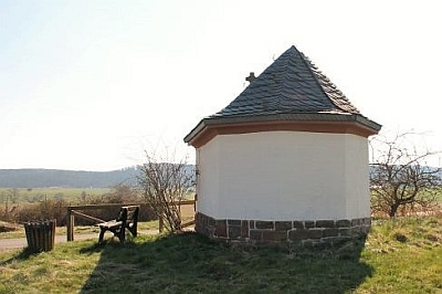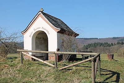 1882 wurde an einem Feldweg westsüdwestlich der Stadt die schlichte Kapelle, ein nach Süden offener Putzbau auf Hausteinsockel, duch Nikolaus Schaeffer und seinen Bruder Mattes nach "Erettung aus Gewitternot" zu Ehren der Muttergottes errichtet.