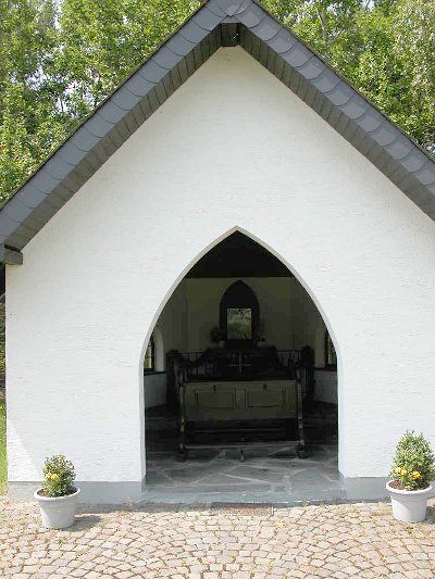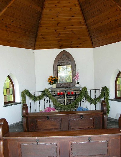 Im Innern befindet sich ein Bildnis der Muttergottes und eingemauert auf einem Sandstein - wohl aus der früheren Kapelle - die Jahreszahl 1855 und der Name - H. LAUERBURG.