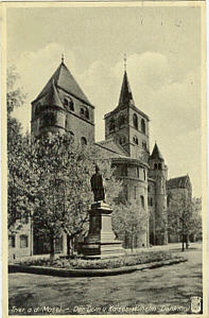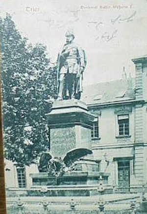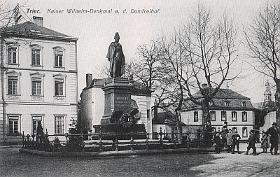 In der Zeit des II. Kaiserreiches (1871-1918) wurden in Deutschland unzählige Denkmäler errichtet. So war es nicht verwunderlich, dass auch Trier ein sieben Meter hohes Denkmal für seinen Großvater, Kaiser Wilhelm I., erhielt und zwar auf dem städtischen Domfreihof vor dem preußischen Regierungsgebäude im Angesicht des Domes, was für viele in dem katholisch geprägten Trier ein Stachel im Fleisch war. Man musste zuerst vor dem protestantischen Kaiser den Hut ziehen, ehe man in den Dom kam und Gott seine Reverenz erwies.