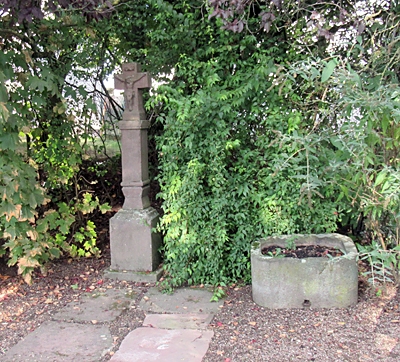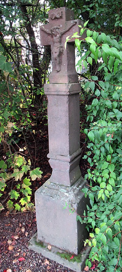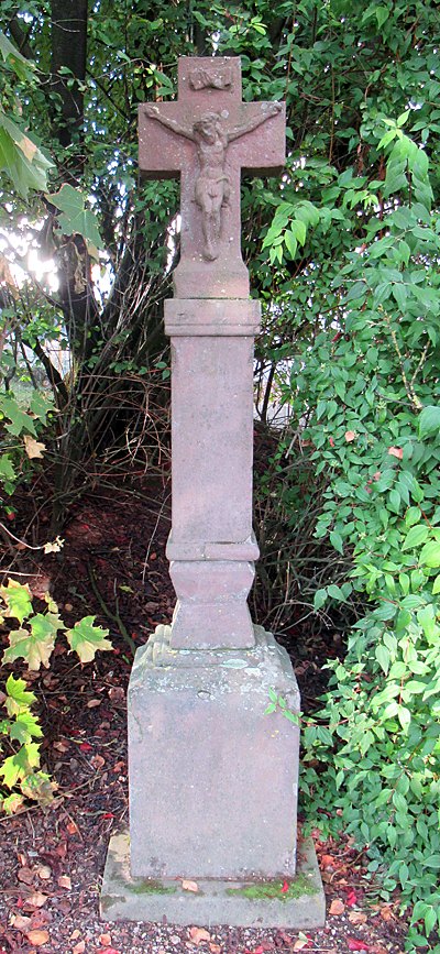 Das Schaftkreuz aus drei Stücken rotem Sandstein wird von einer Einschnürung zwischen seinem hohen Sockel und dem niedrigem Schaft charakterisiert. Das Kruzifix ist eine gute, zu Beginn der zweiten Hälfte des 18. Jahrhunderts entstandene Arbeit. [1]