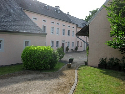 Die an der Nims gelegene, überdurchschnittliche große Anlage besteht aus einem dreiflügelig angeordneten Wohn- und Wirtschaftstrakt und einen freistehenden Schuppen.