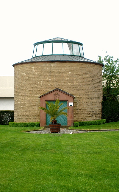 Der zylindrische Baukörper aus Kalksandstein, dessen Flachkuppel 1991 erneuert wurde, wird von einem schlichten Portalvorbau aus rotem Sandstein erschlossen. Im Innern sind ein kleiner Springbrunnen und das schlichte Geländer der Erbauungszeit erhalten. [1]