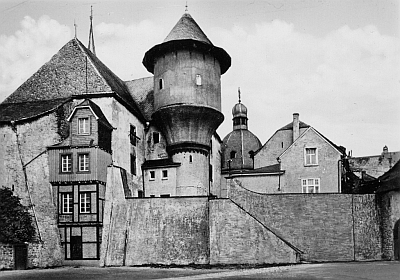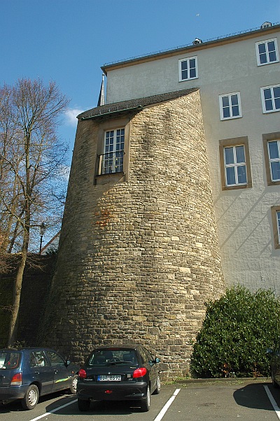 Der Vorgängerbau, das ehemalige Burghaus der Familie Geisen, hatten im 19. Jahrhundert als Stadthaus und später als Amtsgericht gedient und war 1944 ausgebrannt. Es wurde 1953-55 durch einen Neubau nach Plänen von Heinrich Otto Vogel, Trier, ersetzt.