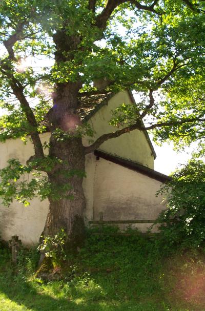 An der hinteren Giebelseite ist die mit einem Pultdach versehene Rundung des Backofens gut ersichtlich. Der Innenraum ist einschließlich Backofen und Schmiede im wesentlichen unverändert.