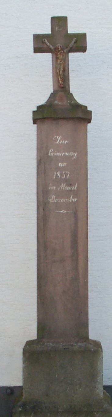 Inschrift: Zur Erinnerung an 1857 im Monat Dezember. Das Kreuz steht an der Aussenwand der Kapelle. [1]