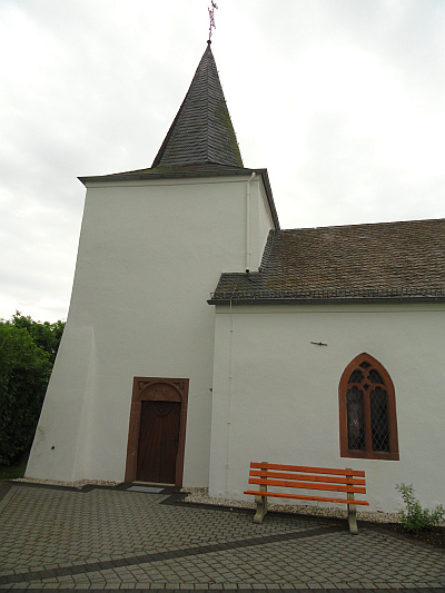 Hubertus-Kapelle. Sie ist ein Kleinod unter den vielen schönen Kirchen in der Eifel. Angeführt vom wuchtigen und erdumhafteten Turm, der um 1250 als Bestandteil einer Wasserburg errichtet wurde, steht die um 1500 angebaute gotische Kirche auf einem Hügel. [3]