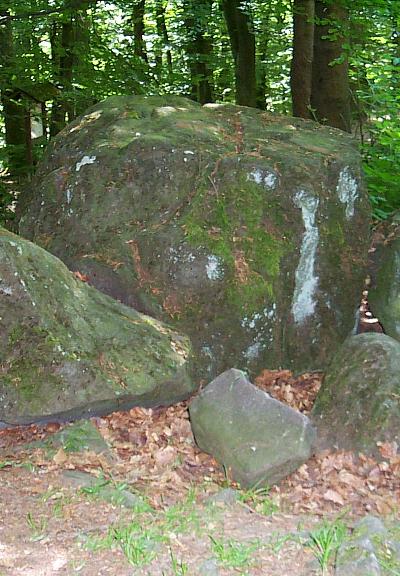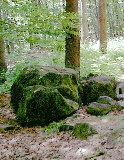 Nach der Überlieferung als Opferstein bzw. Opferplatz bekannt. Der Stein liegt am südlichen Ende des Plateaus direkt am Tor des Ringwalls. [1]