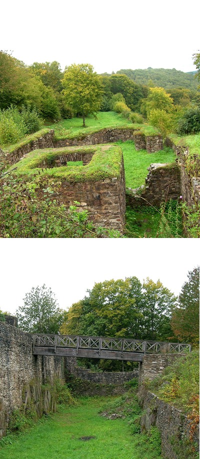 Befestigte Anlage auf einem vom Wadrillbach und vom Mühlenbach begrenzten, nordsüdlich verlaufenden Bergrücken; nur von Norden her, gewissermaßen von oben, zugänglich; Gesamtlänge der Anlage 230 m; Eingangsseite 10breit; Ostseite folgt dem schmalen Hügel . Unter Erzbischof Johann I. von Trier (1190-1212) erbaut; vollendet im Jahr 1192.