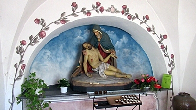 Pfarrkirche mit Pfarrhaus (klassizistischer Saalbau, 1825, romanischer Turm) auf dem ummauerten ehemaligen Burggelände. [2]