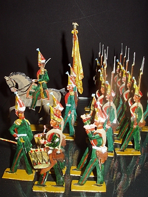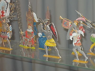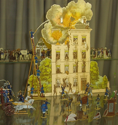 Erstens: Mit alten Figuren und Abgüssen aus alten Formen wird, die Entwicklung der Zinnfiguren ab etwa 1800 anschaulich gemacht, wobei versucht wird die Figuren als Zeugnisse der mitteleuropäischen Kulturgeschichte während anderthalb Jahrhunderten einzuordnen. Der Altfigurensammler wird dort manche Rarität entdecken können. Obgleich ganz überwiegend Flachfiguren ausgestellt sind, werden auch Beispiele für voll- und halbplastische Spielzeugfiguren gezeigt.