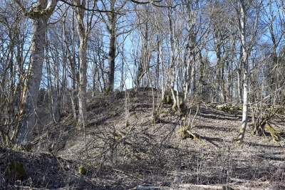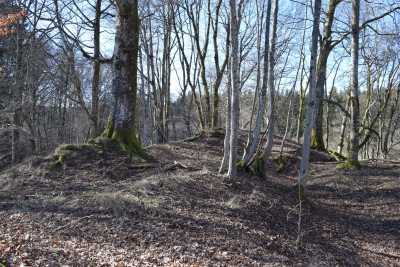2021 sind geringe Steinreste vorhanden. Der Wall ist noch zu erahnen. Der Burghügel als Solcher ist klar zu sehen. [2]