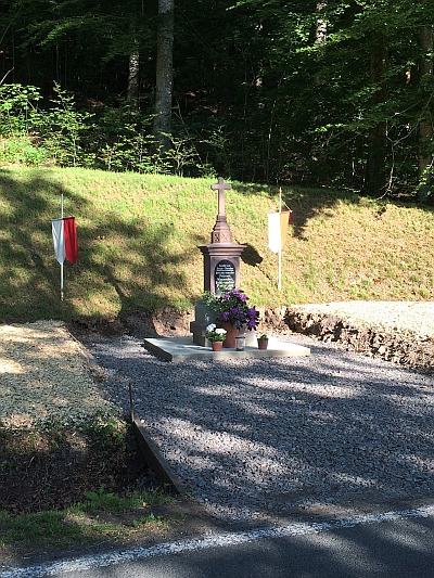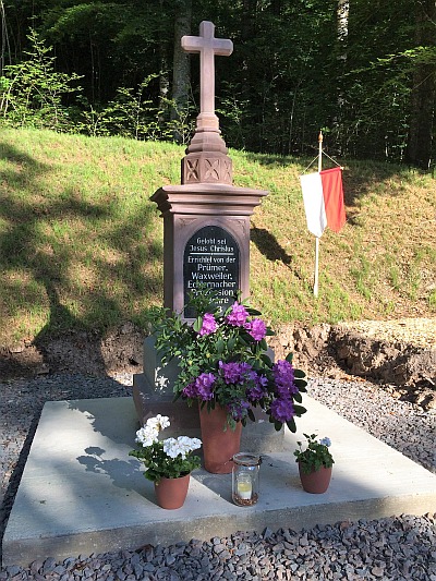 Südöstlich des Ortes, an der Straße Neuerburg-Krautscheid. Das gut erhaltene Sockelkreuz wurde 1893 von den jährlich aus Prüm und Waxweiler zur Echternacher Springprozession ziehenden Pilgern aus nicht bekanntem Anlaß errichtet.