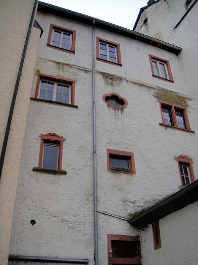 An der Rückseite des im 19. Jahrhundert formverändernd umgebauten Wohnhauses blieben die werksteineingefassten Fenster, wohl aus dem 17. Jahrhundert, erhalten.