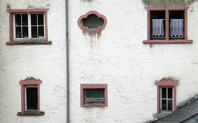 Die ungewöhnliche Fenstergestaltung gehört zu den ältesten profanen Bauformen im Bearbeitungsgebiet.
