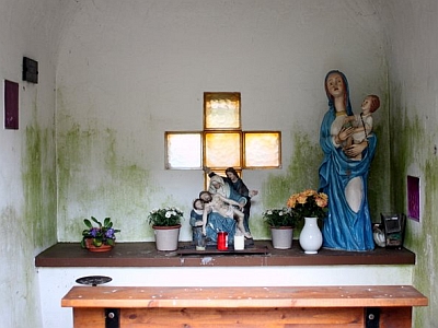 Im Innern eine kleine Pietà nach dem Vorbild des Klausener Gnadenbildes.