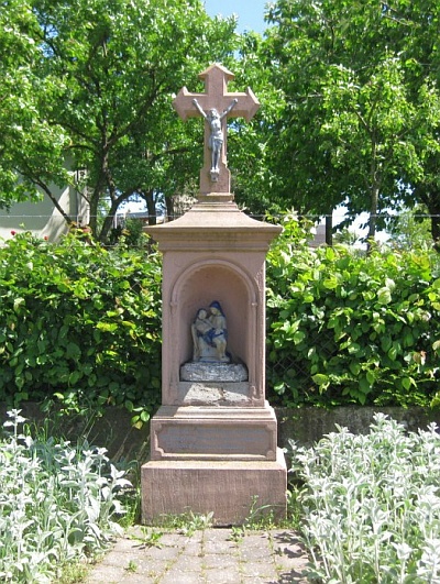 Wegekreuz mit im Sockel eingelassener Muschelnische.