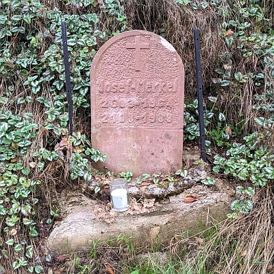 Dieses Kreuz wurde 1988 hier aufgestellt, um an einen tragischen Verkehrsunfall zu erinnern, bei dem der damals erst 24 Jahre alte Josef Merkel ums Leben kam. [1]
