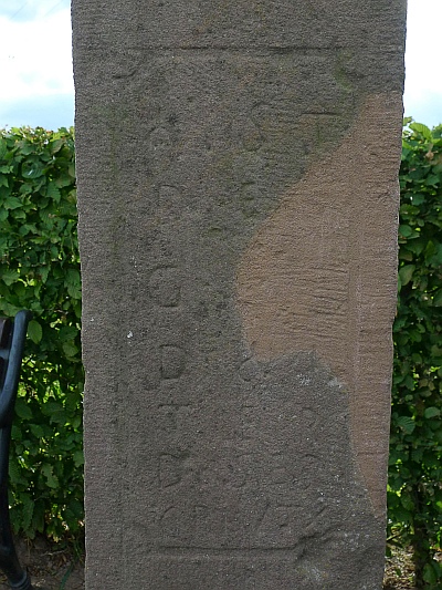 Nach der Instandsetzung und Umsetzung im Jahr 2002 durch die kfd [Katholische Frauengemeinschaft Deutschlands. Red.]und die Ortsgemeinde lässt die Inschrift erkennen, dass es sich um Stifter handelt. Die Zeile 8 könnte als Gift gelesen werden und gäbe dann mit der Silbe TER [e]in sinnvolles altdeutsches Wort: